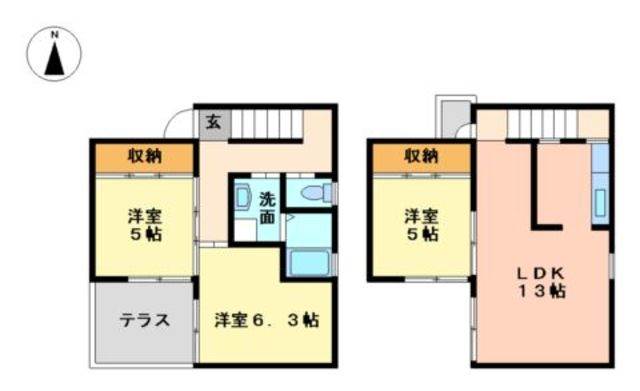 洋室 5畳 洋室 5畳 LDK 13畳 |
