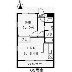 | 間取り詳細 | 洋室 6畳 、 LDK 8.8畳 |