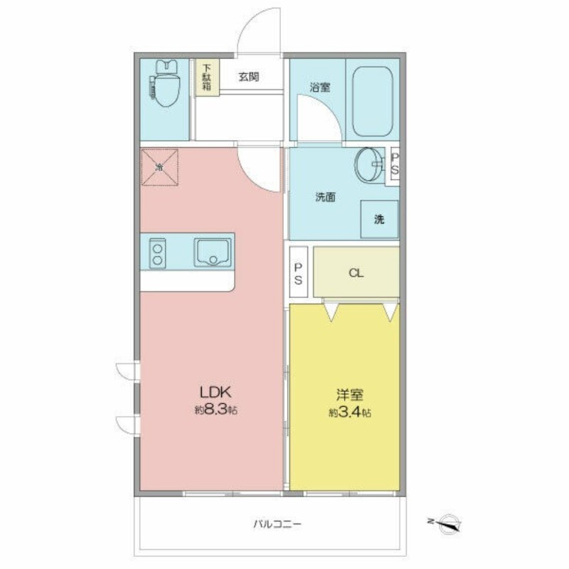 | 間取り詳細 | LDK 8.3畳 、 洋室 3.4畳 |