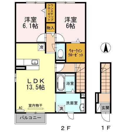| 間取り詳細 | 洋室 6.1畳 、 洋室 6畳 、 LDK 13.5畳 |