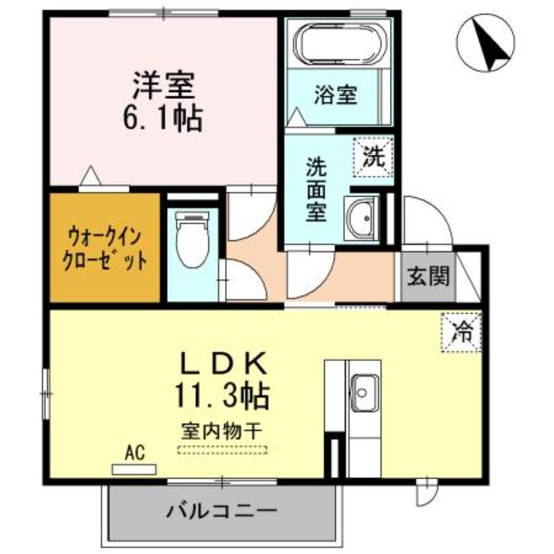 | 間取り詳細 | 洋室 6.1畳 、 LDK 11.3畳 |