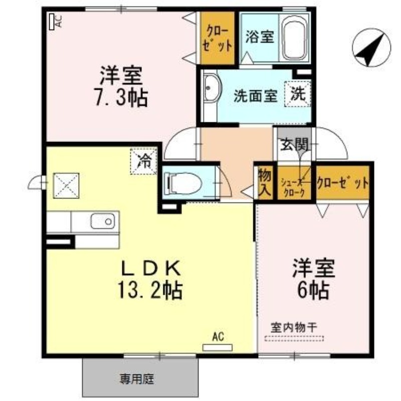 | 間取り詳細 | 洋室 7.3畳 、 洋室 6畳 、 LDK 13.2畳 |