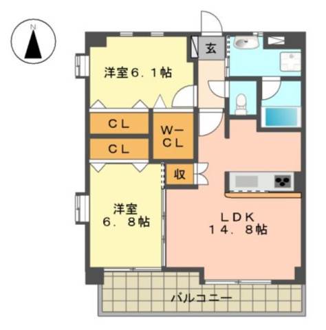 | 間取り詳細 | 洋室 6.8畳 、 洋室 6.1畳 、 LDK 15畳 |