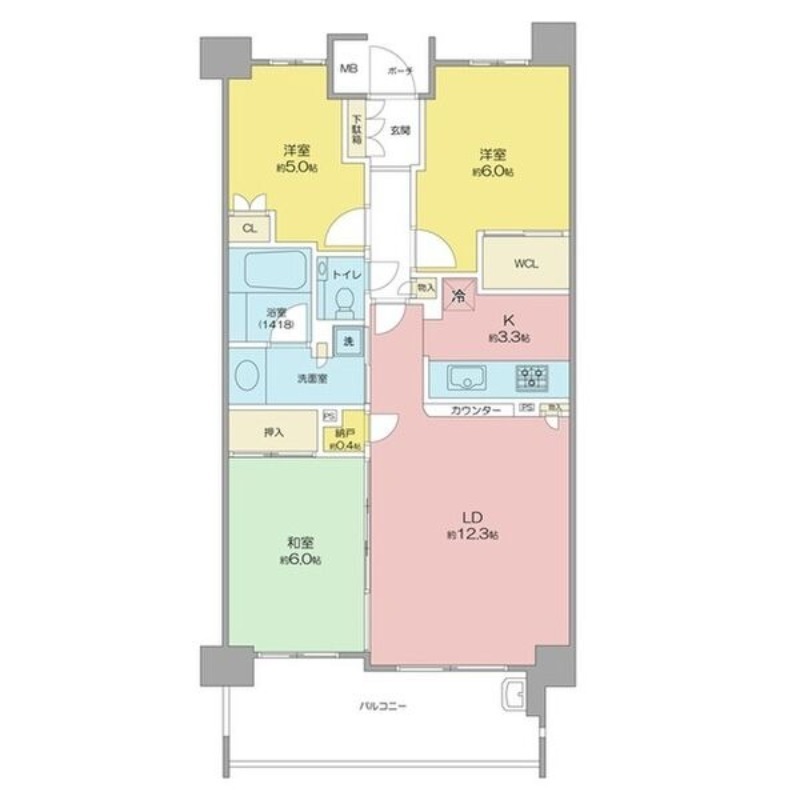 | 間取り詳細 | LD 12.3畳 、 K 3.3畳 、 和室 6畳 、 洋室 5畳 、 洋室 6畳 |