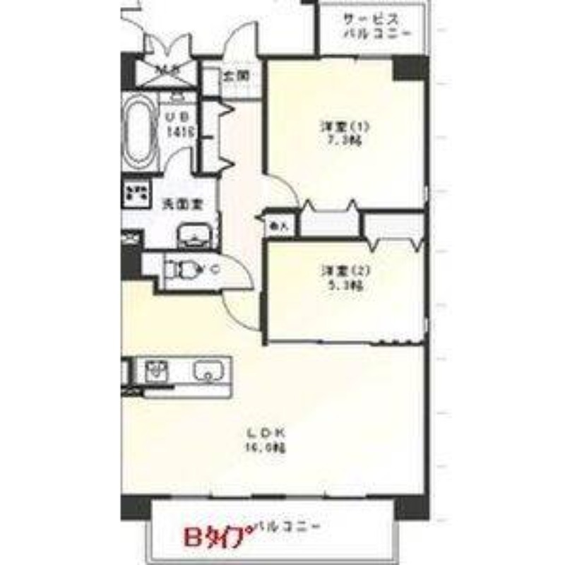 | 間取り詳細 | 洋室 5.3畳 、 洋室 7.3畳 、 LDK 16畳 |