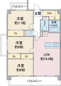 | 間取り詳細 | 洋室 6畳 、 洋室 6畳 、 洋室 7.1畳 、 LDK 14.9畳 |