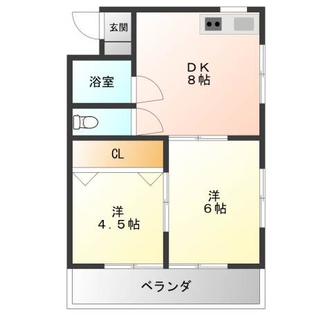 | 間取り詳細 | 洋室 4.5畳 、 洋室 6畳 、 DK 8畳 |