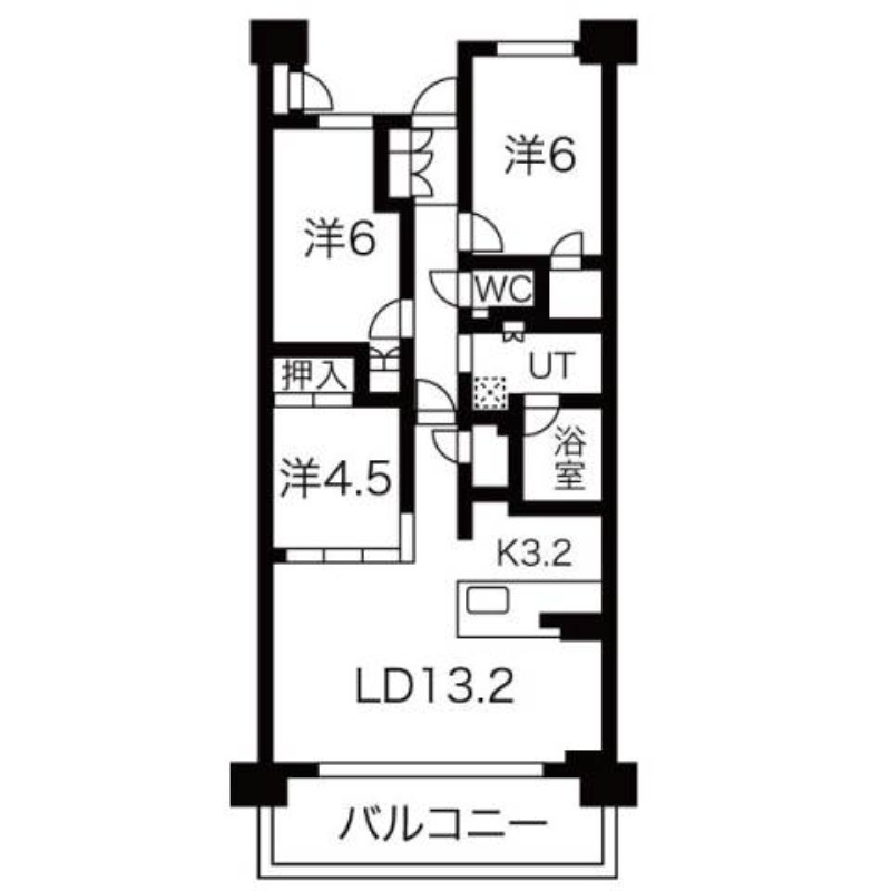洋室 4.5畳 洋室 6畳 洋室 6畳 |