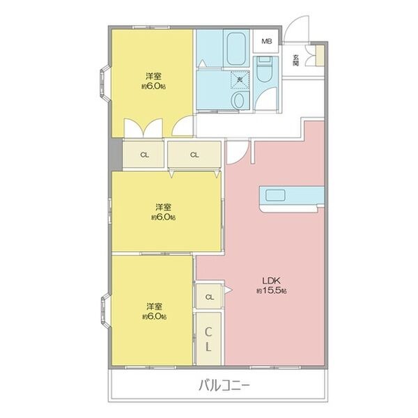 | 間取り詳細 | 洋室 6畳 、 洋室 6畳 、 洋室 6畳 、 LDK 15.5畳 |