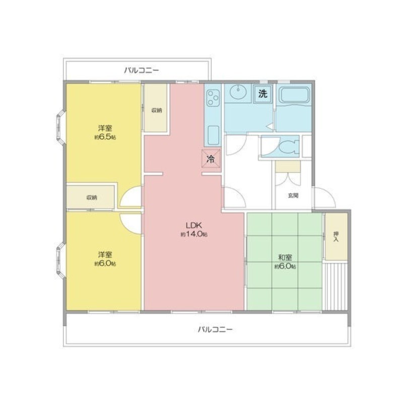 | 間取り詳細 | 和室 6畳 、 洋室 6畳 、 洋室 6.5畳 、 LDK 14畳 |