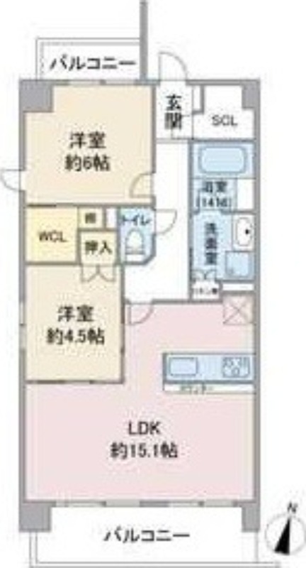 | 間取り詳細 | 洋室 4.5畳 、 洋室 6畳 、 LDK 15.1畳 |