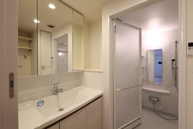 | 設備 | ガス(都市ガス)、管理形態(日勤)、インターホン(TVモニター付き)、オートロック、宅配ボックス、専用ゴミ置き場(あり)、駐輪場、バイク置き場、日当り良好、眺望良好、角部屋、フローリング、全居室フローリング、出窓、ベランダ・バルコニー、2面バルコニー、クローゼット、ウォークインクローゼット、全居室収納、下駄箱、バス・トイレ別(別室)、シャワー、追い焚き、浴室乾燥機、脱衣所、給湯、洗面所独立、洗濯機置き場(室内)、コンロ設置済、コンロ種類(都市ガス)、グリル、システムキッチン、カウンターキッチン、対面キッチン、エアコン、BS、CS、CATV、光ファイバー | ||