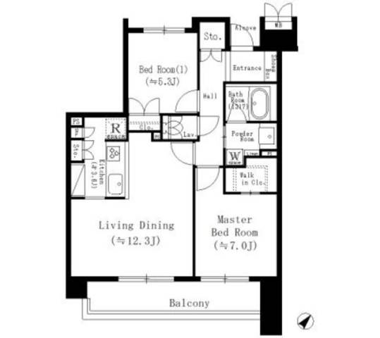 | 間取り詳細 | 洋室 7畳 、 洋室 5.3畳 、 LD 12.3畳 、 K 畳 |