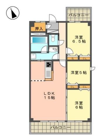 | 間取り詳細 | 洋室 6.5畳 、 洋室 6畳 、 洋室 5畳 、 LDK 15畳 |