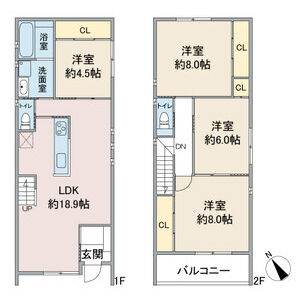 | 間取り詳細 | 洋室 4.5畳 、 洋室 6畳 、 洋室 8畳 、 洋室 8畳 、 LDK 18.9畳 |