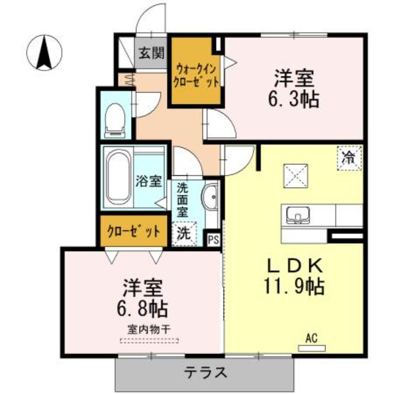| 間取り詳細 | 洋室 6.3畳 、 洋室 6.8畳 、 LDK 11.9畳 |