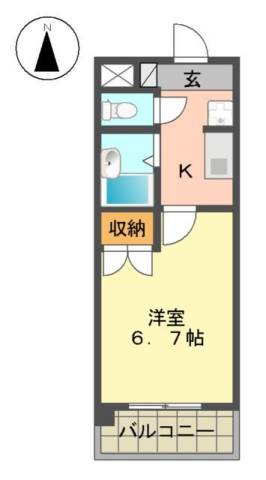 | 間取り詳細 | 洋室 6.7畳 、 K 2.5畳 |