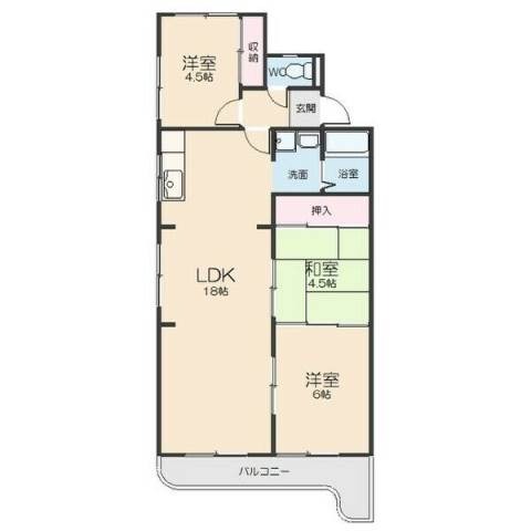 | 間取り詳細 | 和室 4.5畳 、 洋室 6畳 、 洋室 4.5畳 、 LDK 18畳 |