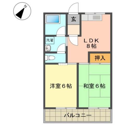 | 間取り詳細 | 和室 6畳 、 洋室 6畳 、 LDK 8畳 |