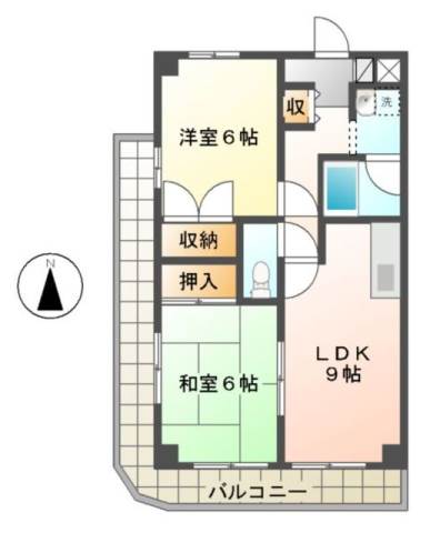 | 間取り詳細 | 和室 6畳 、 洋室 6畳 、 LDK 9.7畳 |