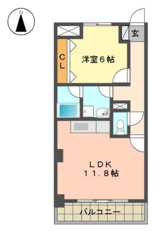 | 間取り詳細 | 洋室 6畳 、 LDK 11.8畳 |