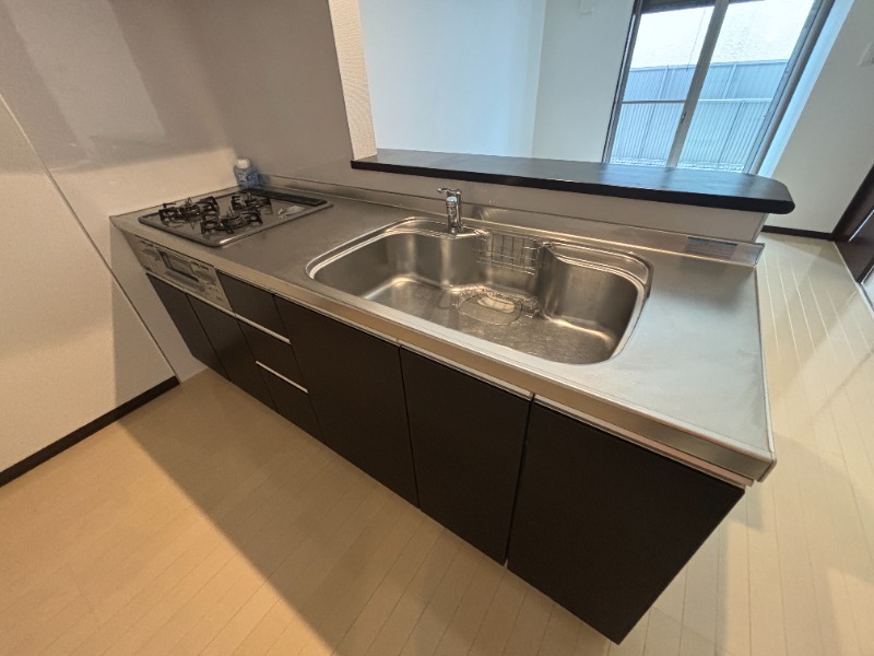 | 設備 | インターホン(TVモニター付き)、日当り良好、フローリング、全居室フローリング、ベランダ・バルコニー、専用庭、クローゼット、クローゼット数(1)、バス・トイレ別(別室)、シャワー、追い焚き、浴室乾燥機、オートバス、脱衣所、給湯、温水洗浄便座、洗面所独立、シャンプードレッサー、三面鏡付き洗面化粧台、洗面所にドア、洗濯機置き場(室内)、コンロ設置済、コンロ口数(3)、コンロ種類(都市ガス)、システムキッチン、カウンターキッチン、対面キッチン、BS | ||