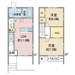 | 間取り詳細 | 洋室 7.3畳 、 洋室 6畳 、 LDK 11.6畳 |