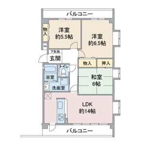 | 間取り詳細 | 和室 6畳 、 洋室 6.5畳 、 洋室 5.5畳 、 LDK 14畳 |