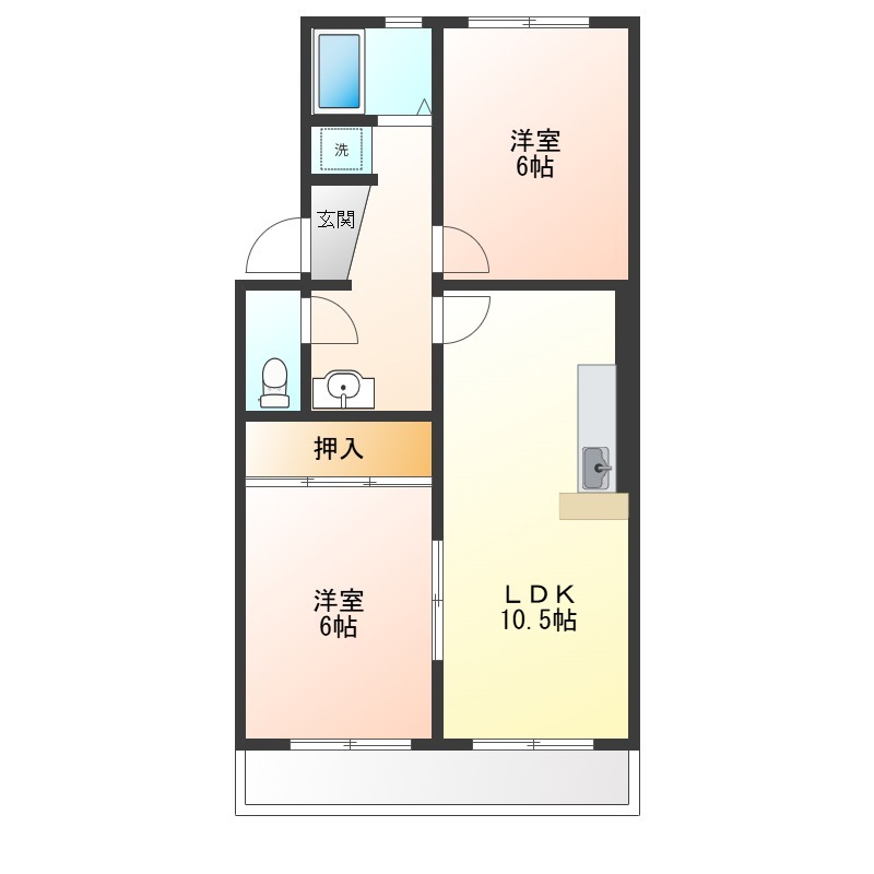 | 間取り詳細 | 洋室 6畳 、 洋室 6畳 、 LDK 10.5畳 |