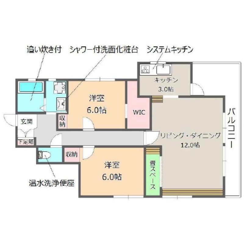| 間取り詳細 | 洋室 6畳 、 洋室 6畳 、 LDK 12畳 |