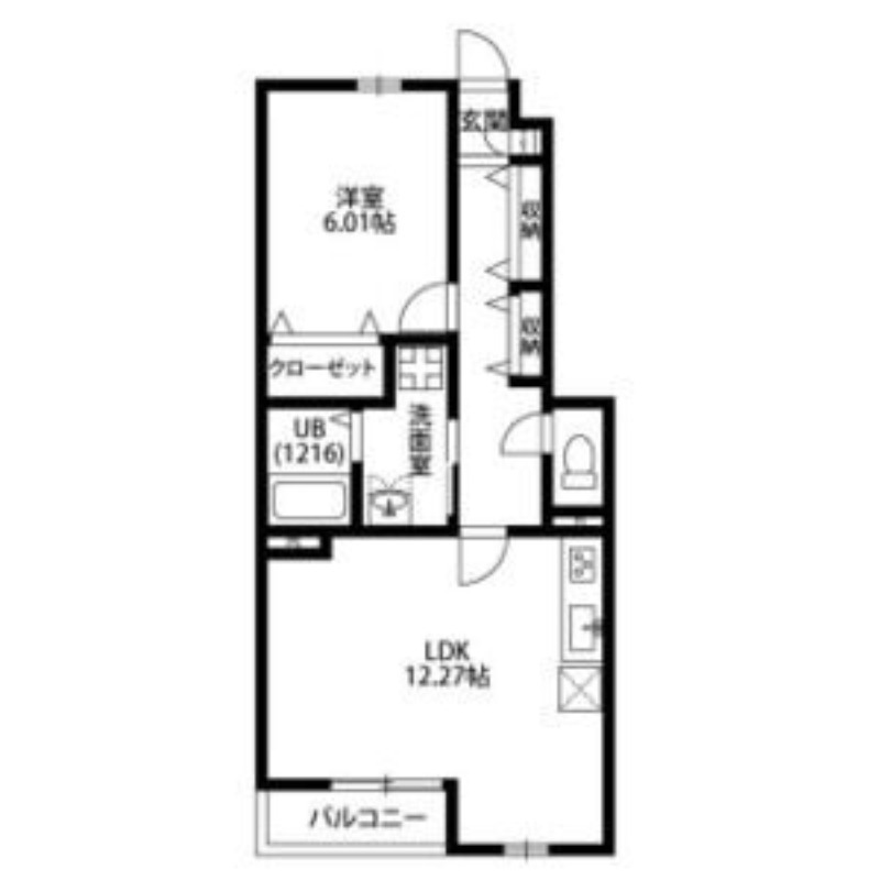 | 間取り詳細 | 洋室 6.01畳 、 LDK 12.27畳 |
