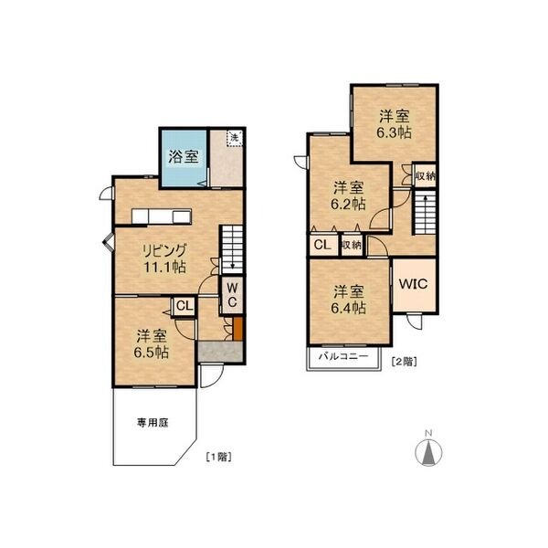 | 間取り詳細 | 洋室 6.3畳 、 洋室 6.2畳 、 洋室 6.4畳 、 洋室 6.5畳 、 LDK 11.1畳 |