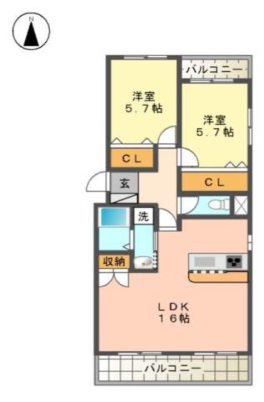 | 間取り詳細 | 洋室 5.7畳 、 洋室 5.7畳 、 LDK 16畳 |
