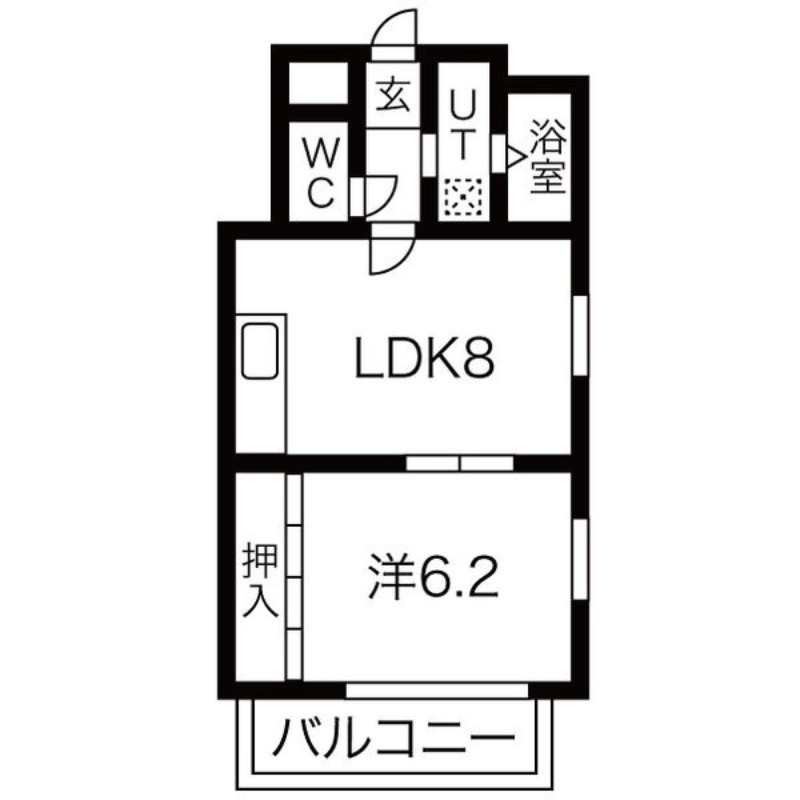 | 間取り詳細 | 洋室 6.2畳 、 LDK 8畳 |