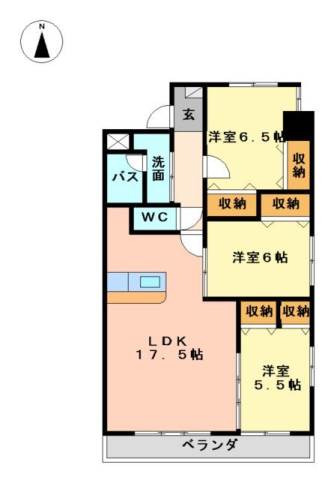 | 間取り詳細 | 洋室 6.5畳 、 洋室 6畳 、 洋室 5.5畳 、 LDK 17.5畳 |