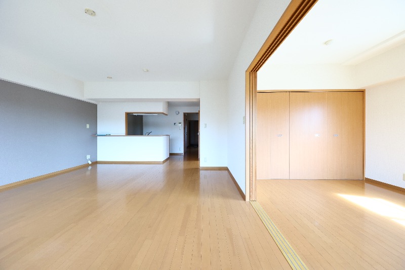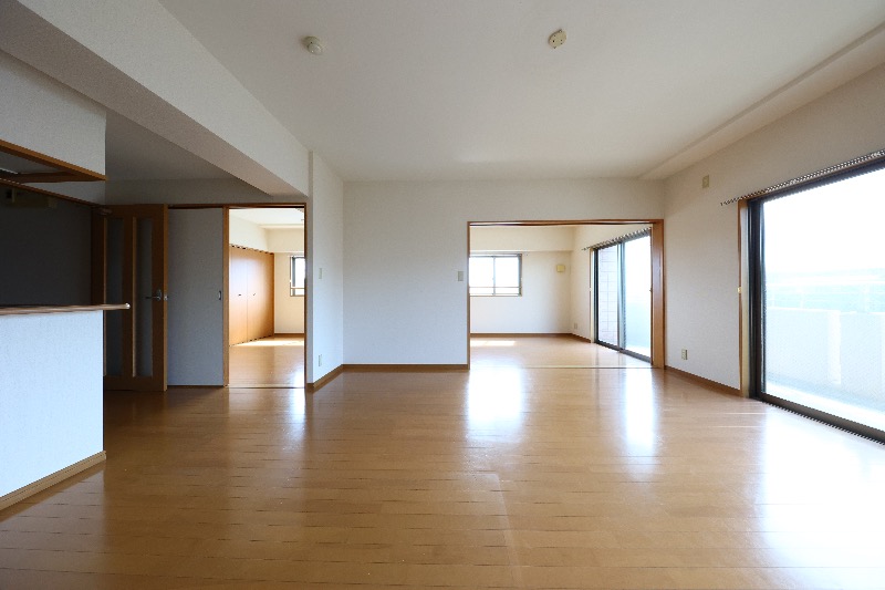 全フローリングの洋室です! カウンターキッチンのあるリビングと隣の洋間をつなげ、開放的で明るい23帖にも★ 名駅、栄、星ヶ丘駅へバス1本、アクセス◎ 現地待ち合わせでのご案内、送迎も喜んで承ります!