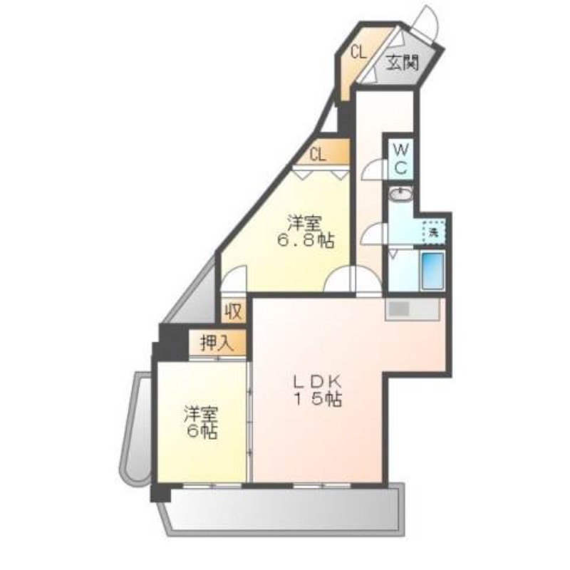 | 間取り詳細 | 洋室 6.8畳 、 洋室 6畳 、 LDK 15畳 |