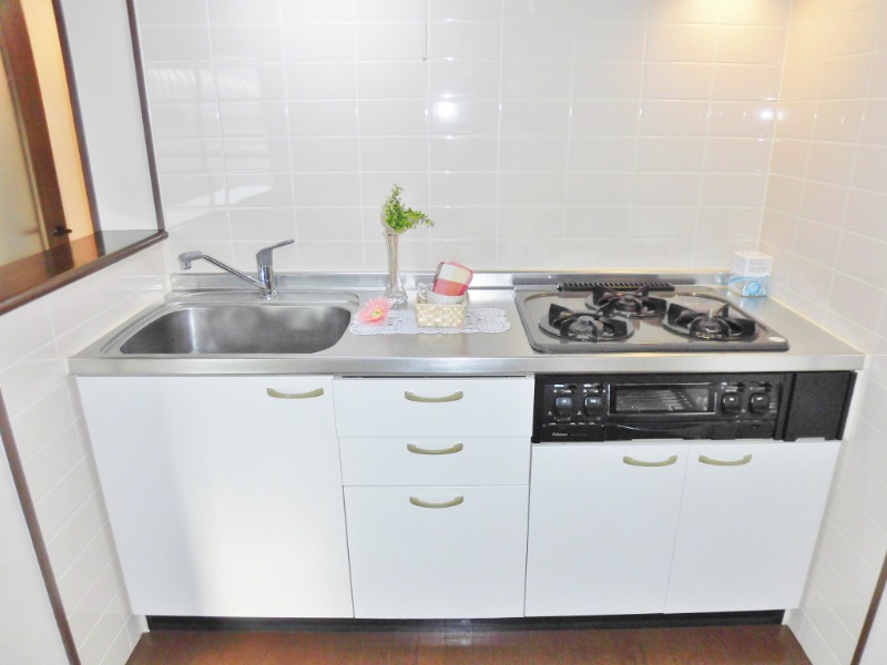 | 設備 | ガス(都市ガス)、インターホン(TVモニター付き)、駐輪場、日当り良好、角部屋、フローリング、全居室フローリング、ベランダ・バルコニー、クローゼット、下駄箱、バス・トイレ別(別室)、シャワー、脱衣所、給湯、洗面所独立、シャンプードレッサー、コンロ種類(都市ガス)、システムキッチン、BS、光ファイバー | ||