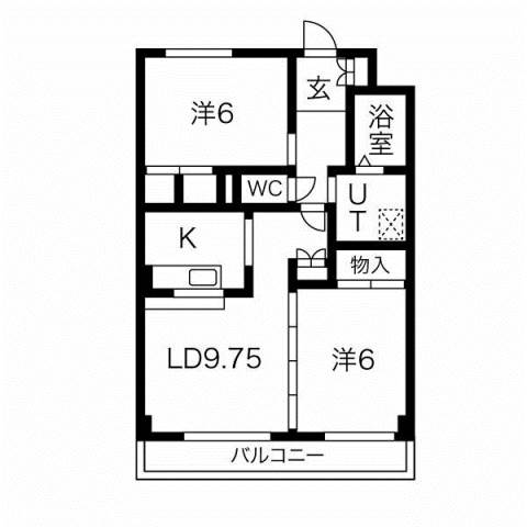 | 間取り詳細 | 洋室 6畳 、 洋室 6畳 、 LD 9.75畳 、 K 畳 |