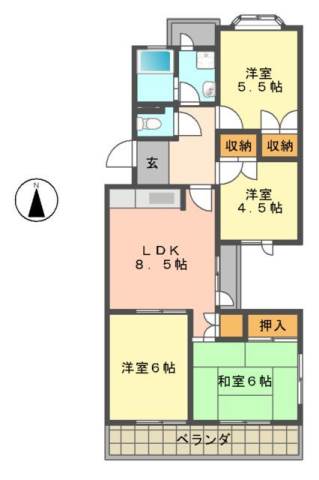 | 間取り詳細 | 和室 6畳 、 洋室 4.5畳 、 洋室 5.5畳 、 洋室 6畳 、 LDK 8.5畳 |