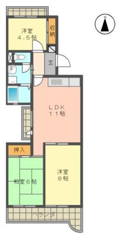 | 間取り詳細 | 和室 6畳 、 洋室 8畳 、 洋室 4.5畳 、 LDK 11畳 |
