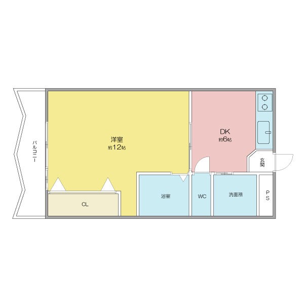 | 間取り詳細 | 洋室 12畳 、 DK 6畳 |