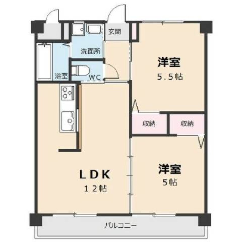 | 間取り詳細 | LDK 12畳 、 洋室 5畳 、 洋室 5.5畳 |