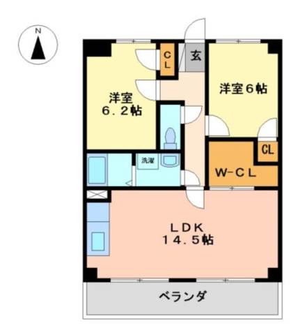 | 間取り詳細 | 洋室 6畳 、 洋室 6.2畳 、 LDK 14.2畳 |