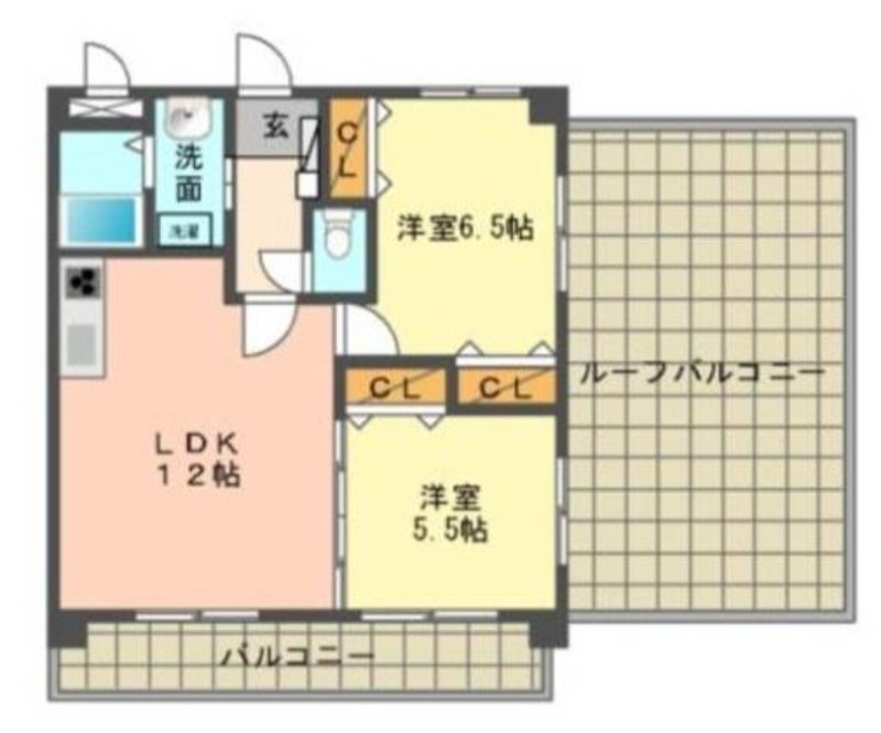| 間取り詳細 | 洋室 6.5畳 、 洋室 5.5畳 、 LDK 12畳 |