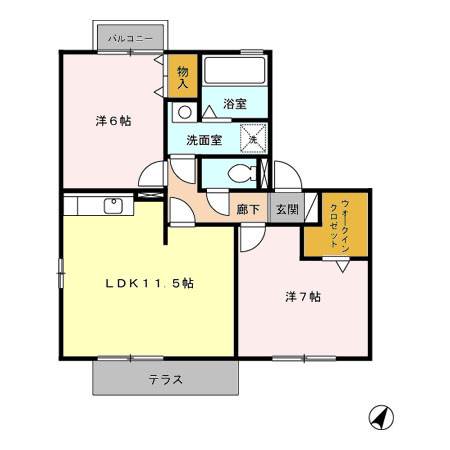 | 間取り詳細 | 洋室 7畳 、 洋室 6畳 、 LDK 11.5畳 |