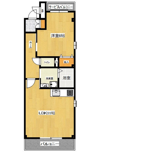 | 間取り詳細 | 洋室 6.8畳 、 LDK 11畳 |