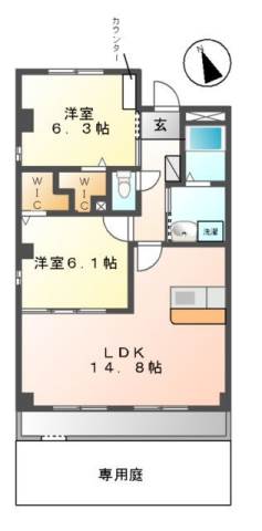 | 間取り詳細 | 洋室 6.3畳 、 洋室 6畳 、 LDK 14.8畳 |