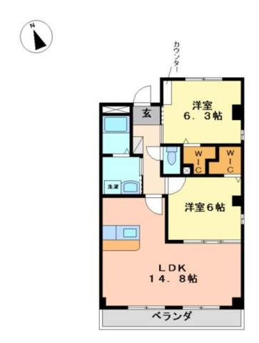 | 間取り詳細 | 洋室 6.3畳 、 洋室 6畳 、 LDK 14.8畳 |