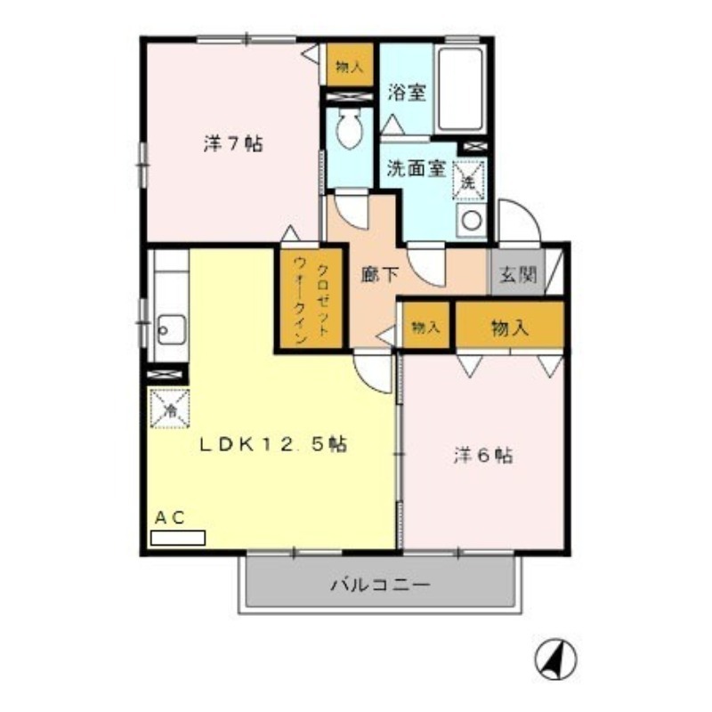 | 間取り詳細 | 洋室 7畳 、 洋室 6畳 、 LDK 12.5畳 |